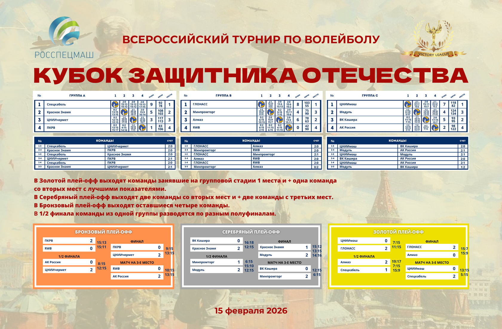 15 февраля 2026 года в СК «Столица Спорта», г. Москва состоялся Всероссийский Волейбольный турнир «Кубок Защитника Отечества».