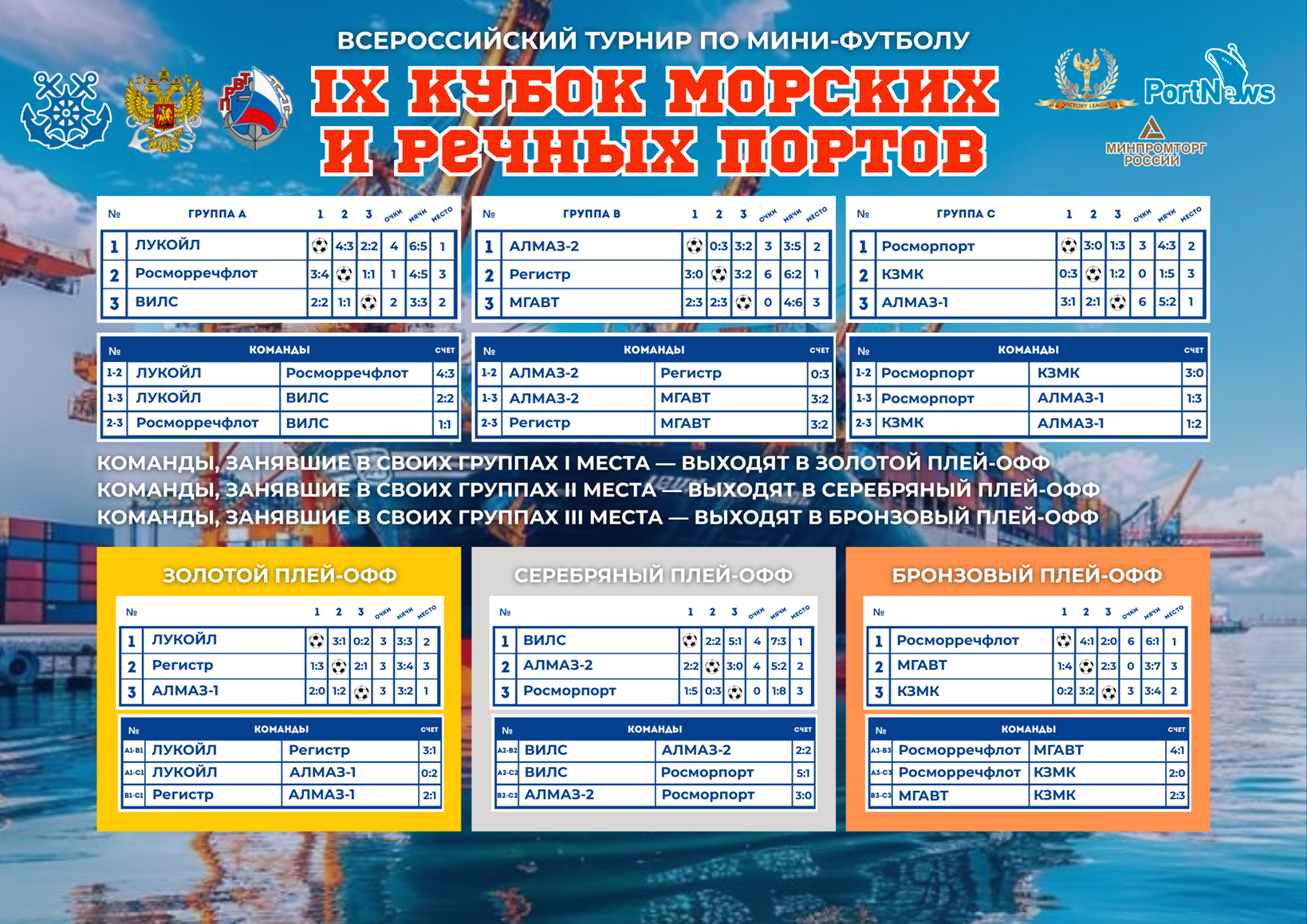 Программа прошедшего 02 ноября 2025 года Кубка «IX Кубок Морских и Речных портов» включала в себя следующие мероприятия: